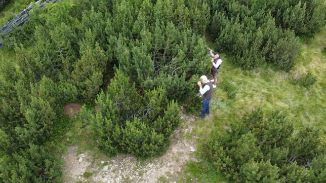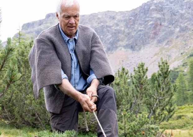 Da sich die Latschen meist in unwegsamem Gelände befinden, müssen die abgetrennten Zweige zu „Packen“, von welchen jeder etwa 40 kg wiegt, gebündelt werden.